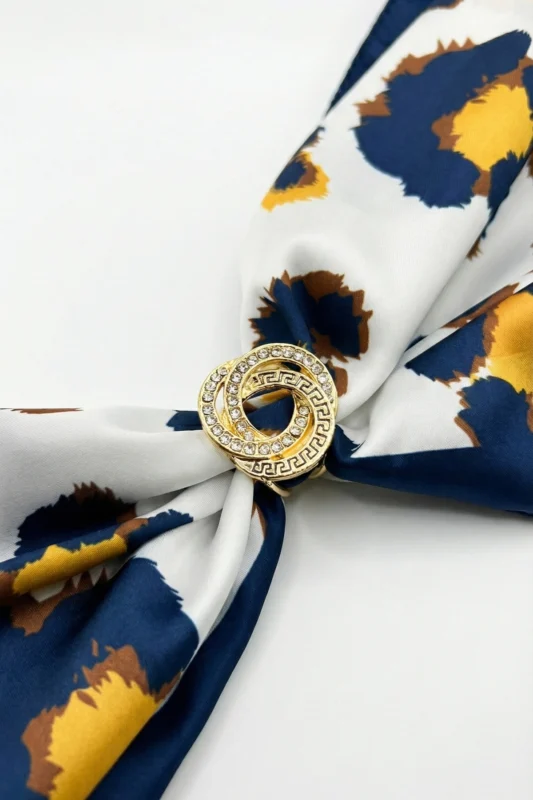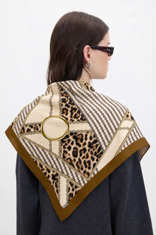 Altın Halka Leopar Desenli Bandana Fular
