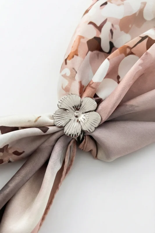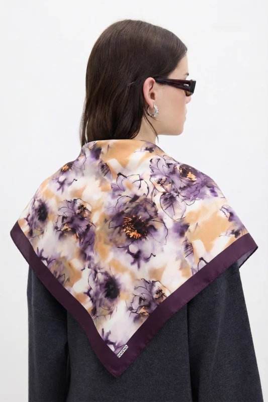 Amber Çiçek Desenli Bandana Fular