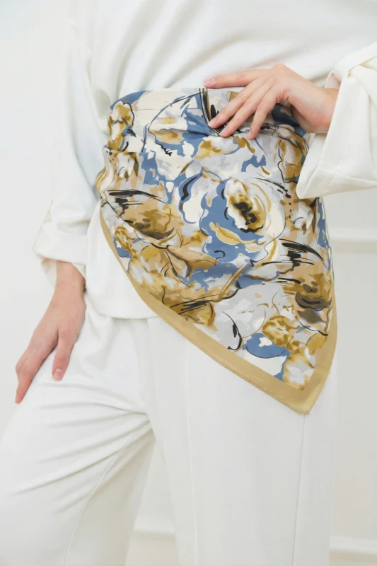 Mavi Sükût Desenli Bandana Fular