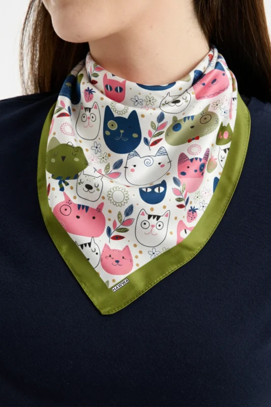 Sevimli Kedi Desenli Bandana Fular