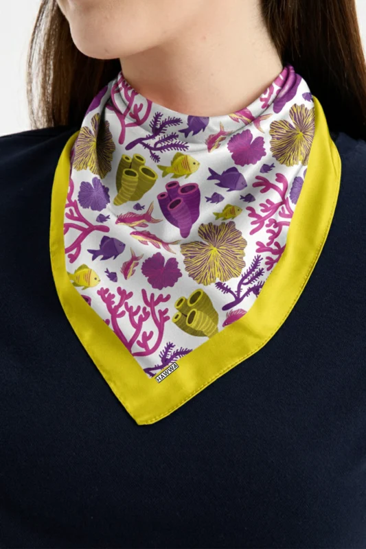 Okyanus Bahçesi Desenli Bandana Fular