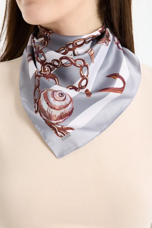 Deniz Kabuklu ve Zincir Desenli Bandana Fular