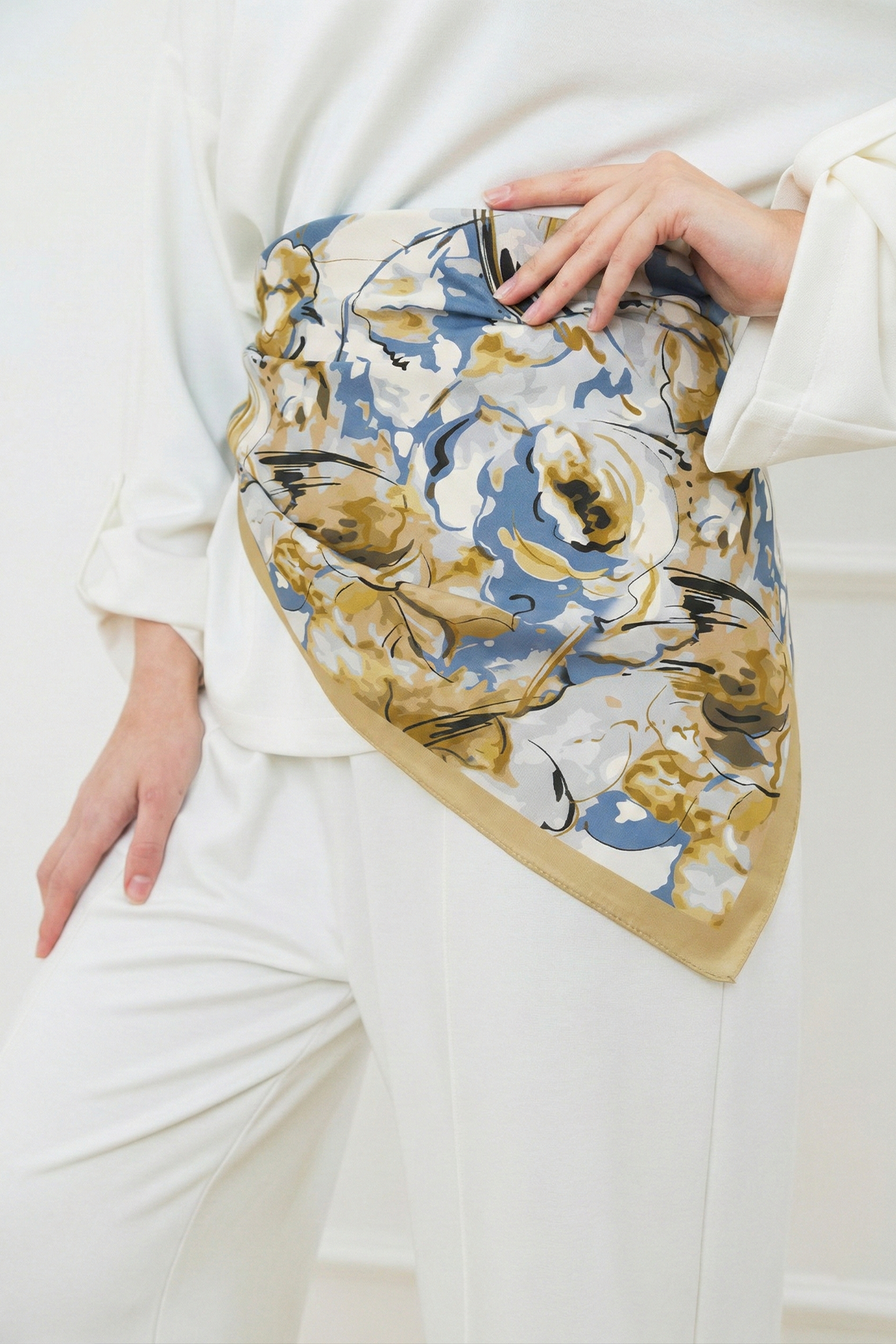 HAWWA’nın seçkin koleksiyonundan Altın Fırça Desenli Bandana Fular, doğal bambu liflerinden gelen yumuşak dokusu ve nefes alabilen yapısıyla gün boyu konforu zarafetle buluşturur. Akışkan duruşu ve dengeli desen yerleşimi sayesinde hem modern hem de zamansız bir stil sunar.
