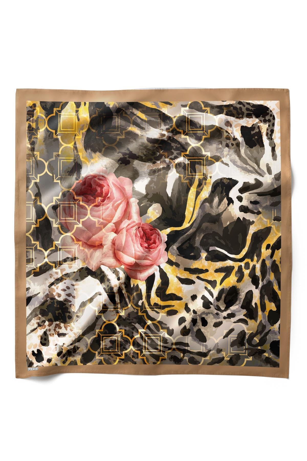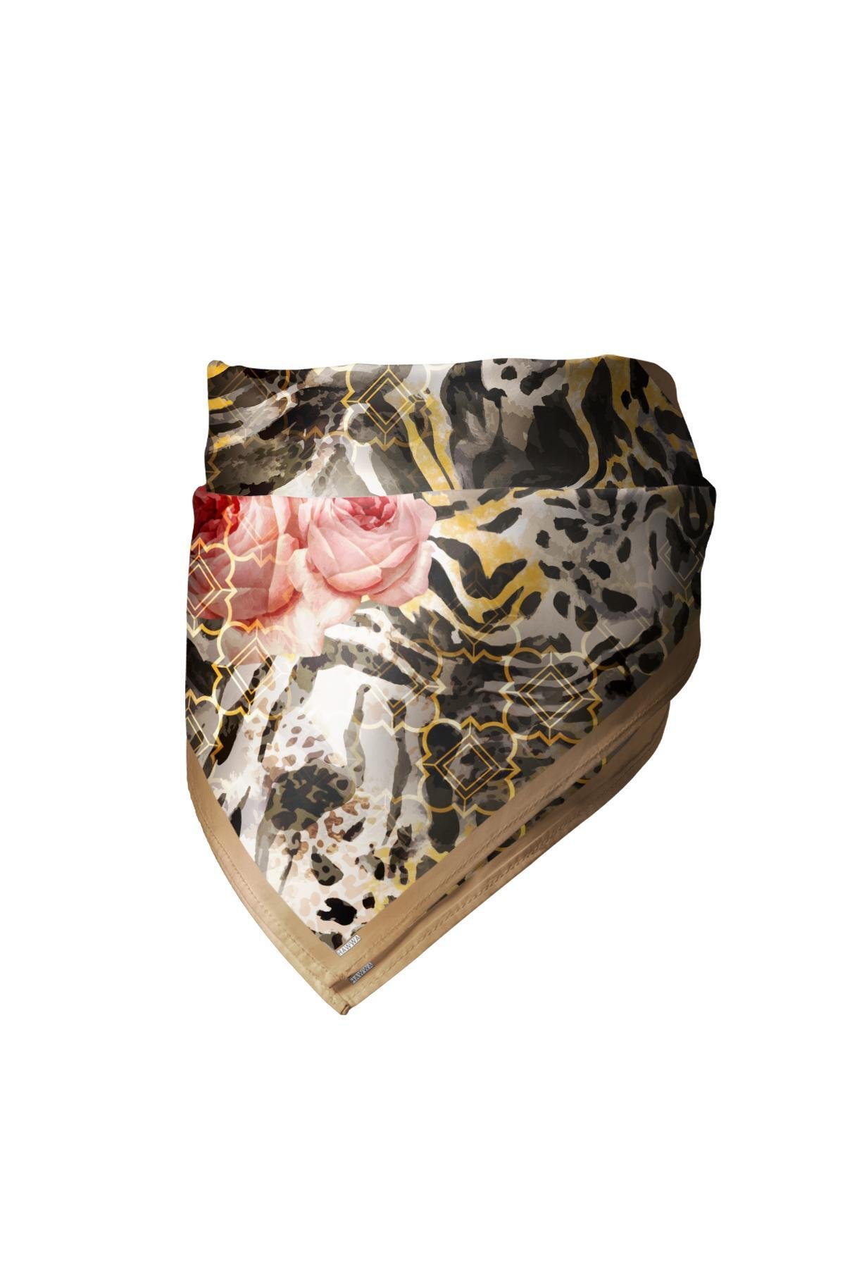 Altın İzli Gül Desenli Bandana Fular