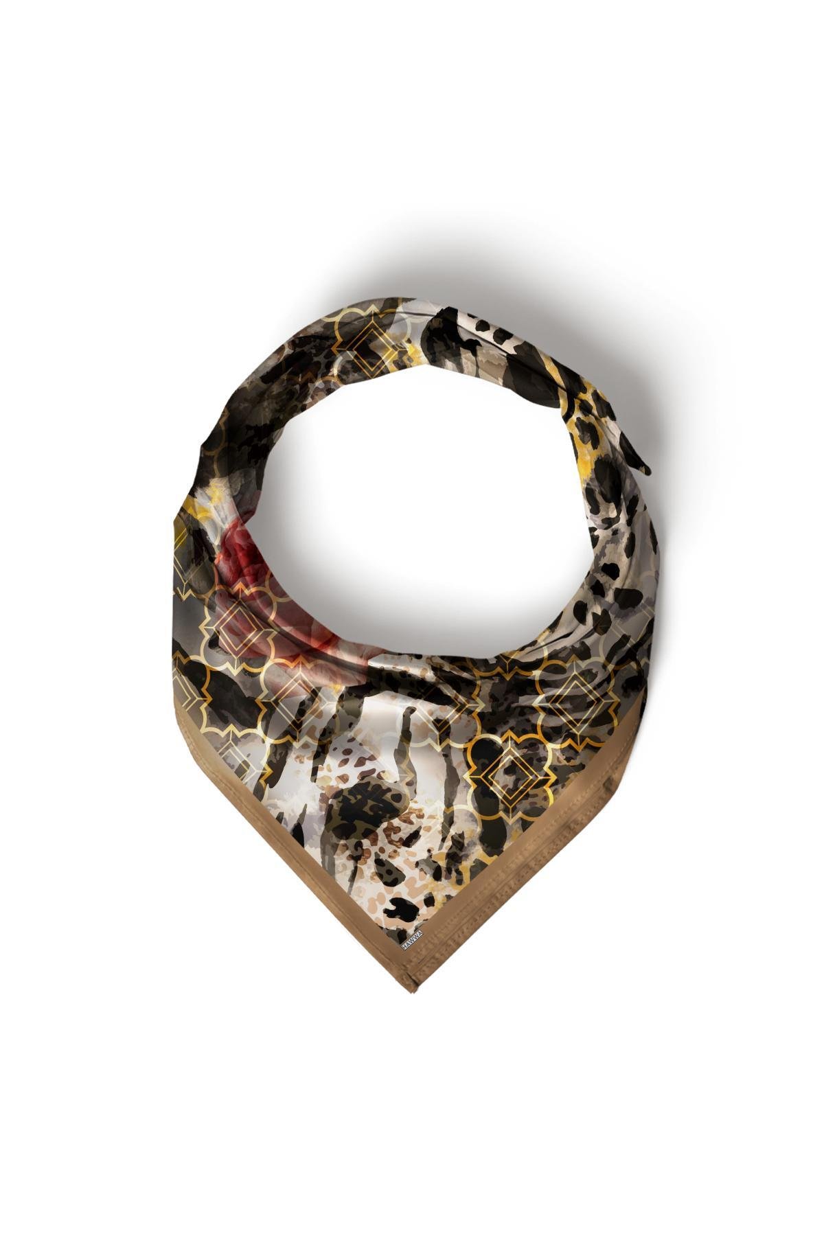 Altın Halka Leopar Desenli Bandana Fular