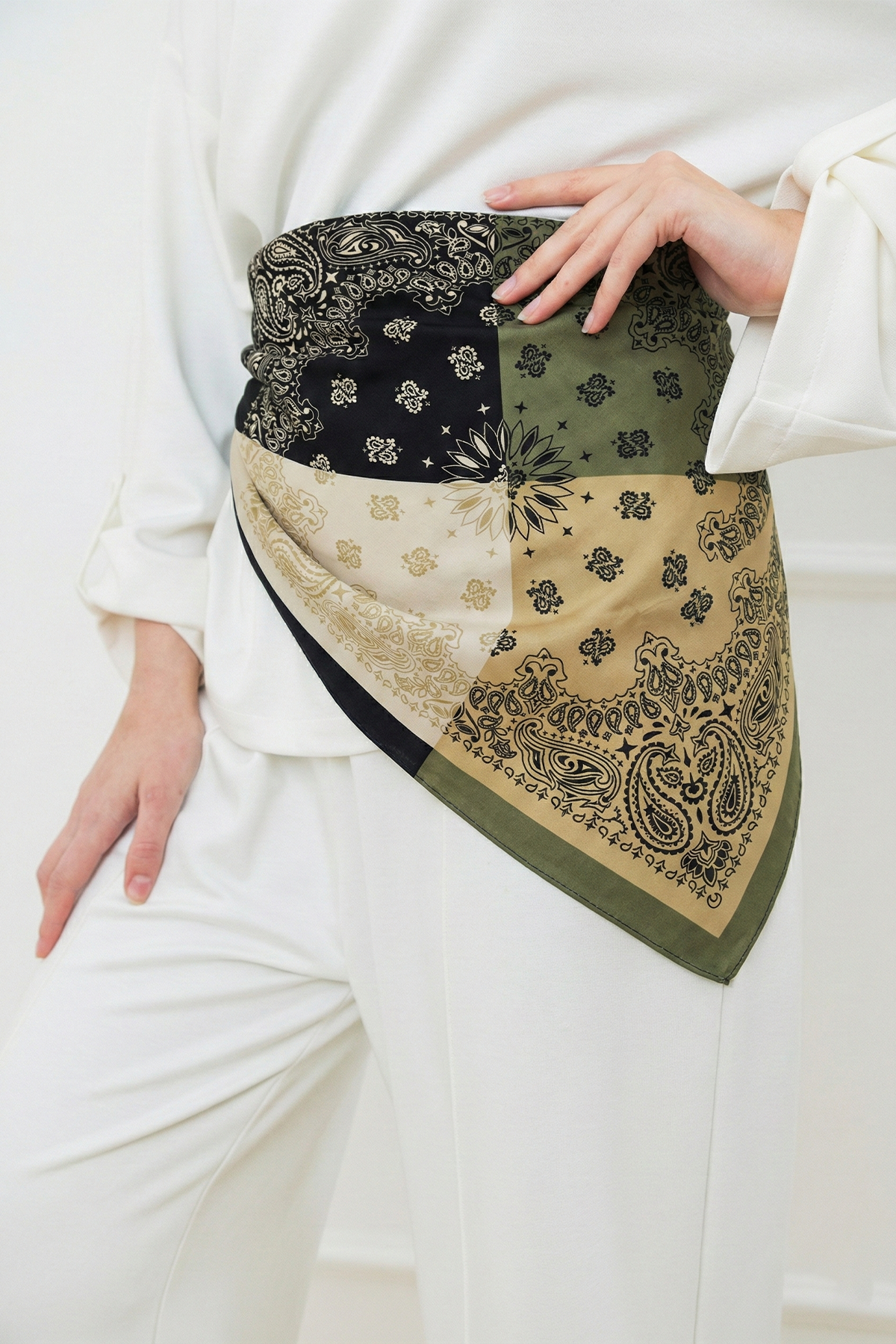 HAWWA’nın seçkin koleksiyonundan Dört Yol Desenli Bandana Fular, doğal bambu liflerinden gelen yumuşak dokusu ve nefes alabilen yapısıyla gün boyu konforu zarafetle buluşturur. Akışkan duruşu ve dengeli desen yerleşimi sayesinde hem modern hem de zamansız bir stil sunar.