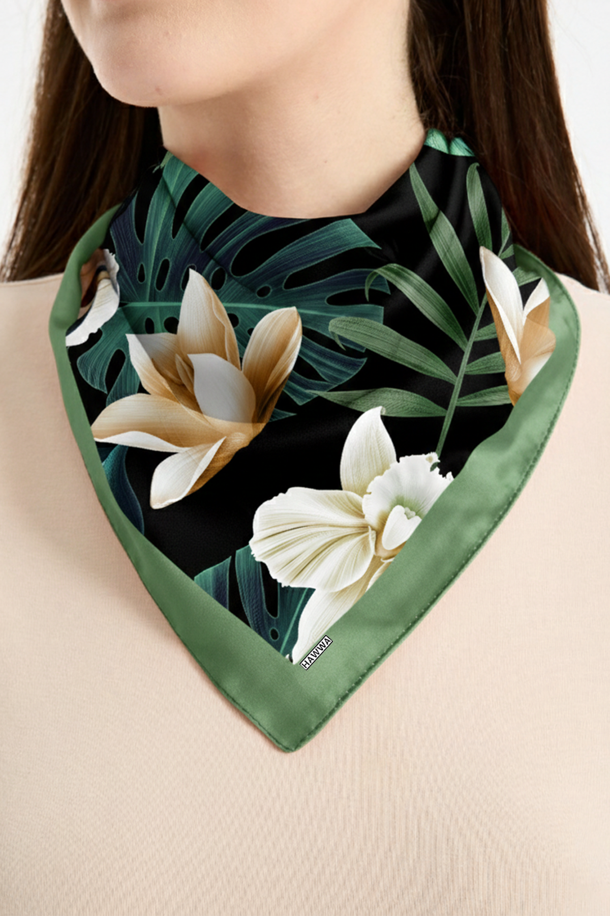 Hawwa’nın seçkin koleksiyonundan Fildişi Çiçeği Desenli Bandana Fular, şıklığı ve zarafeti bir araya getirir. Yumuşak dokulu rayon saten kumaşı, ışığı doğal biçimde yansıtarak ipeksi bir görünüm kazandırır. Kompakt 55×55 cm ölçüsü, hem boyun fularında hem saç aksesuarında hem de çanta süslemede çok yönlü kullanım sağlar.
