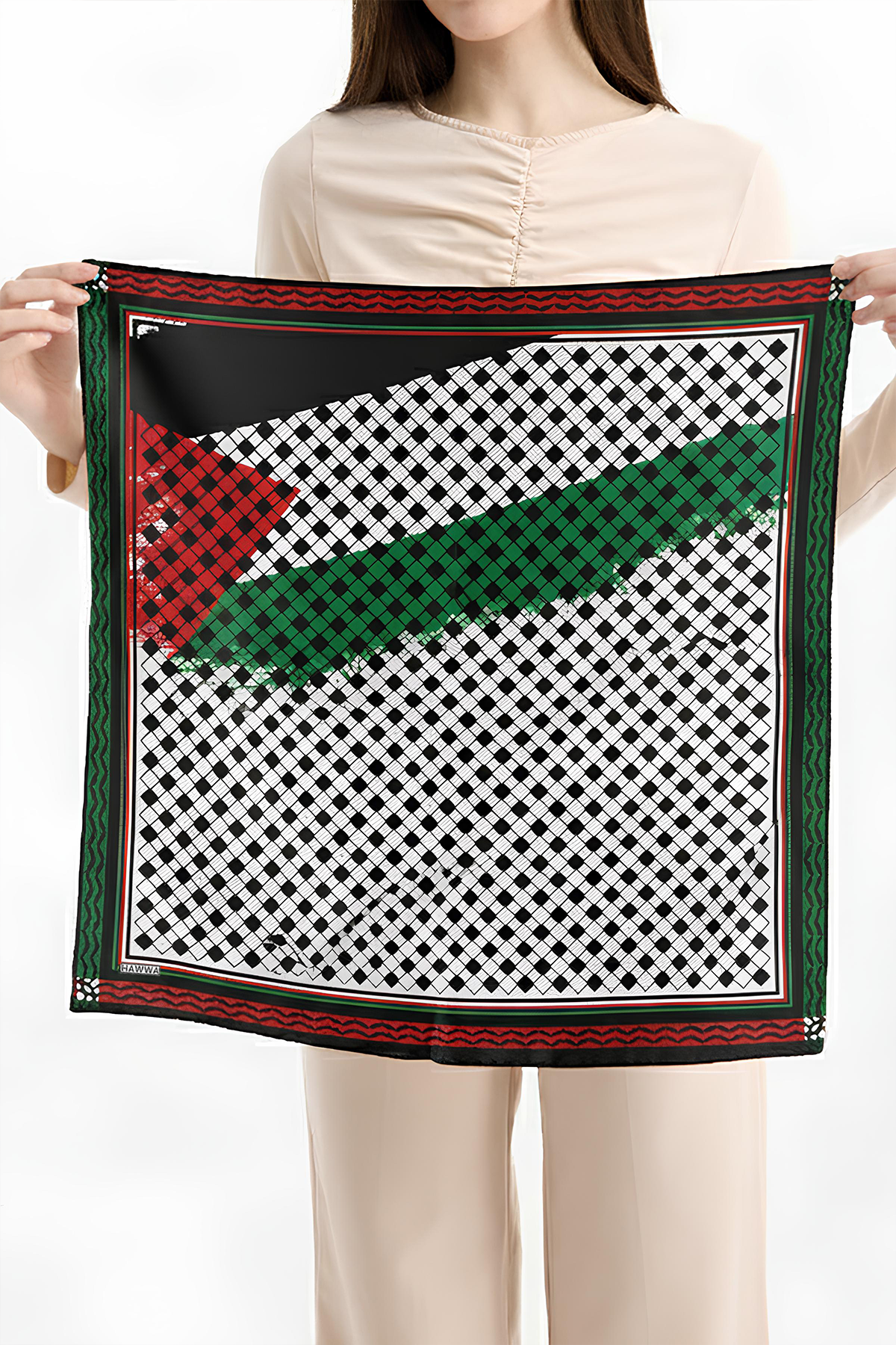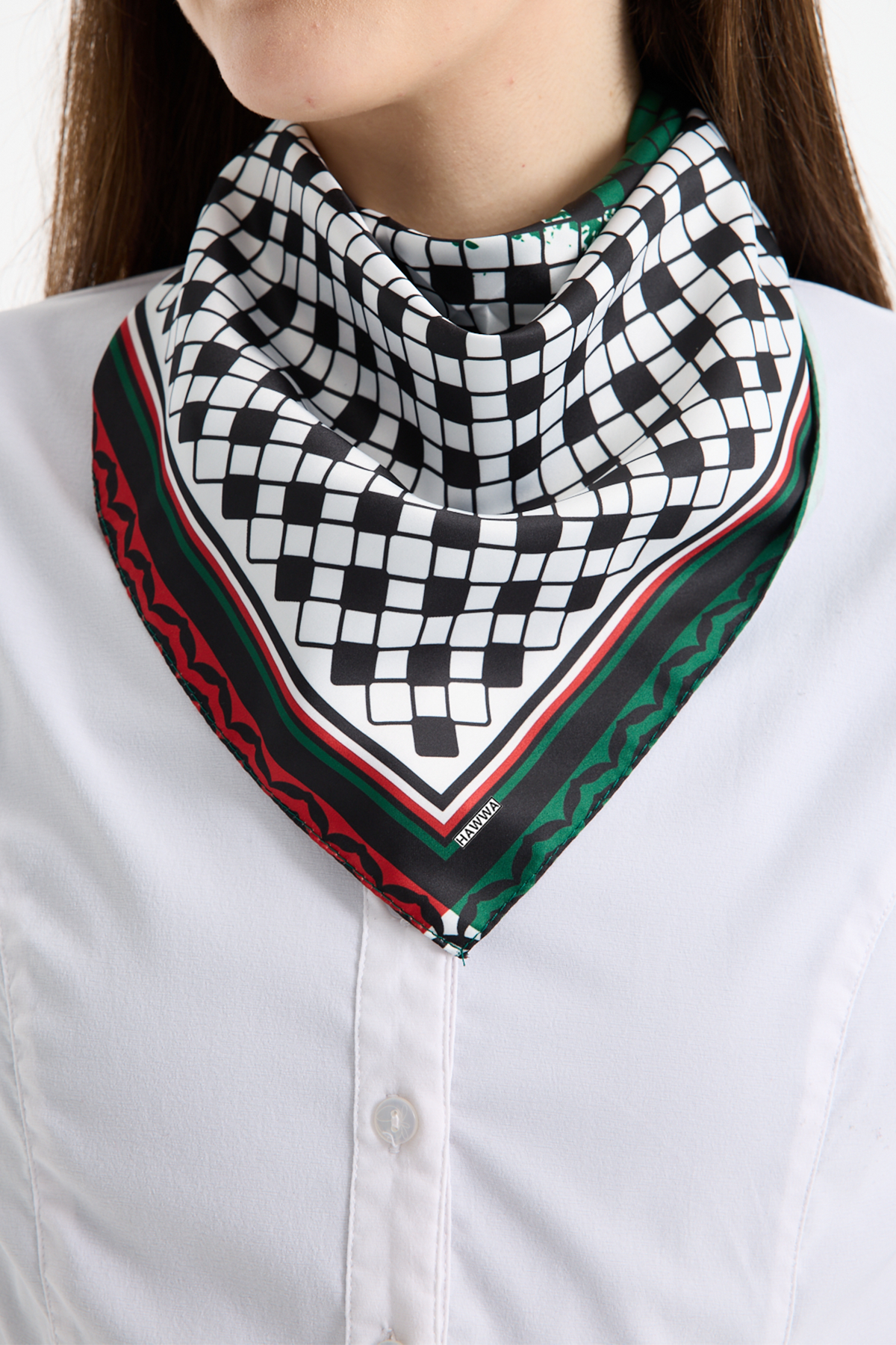 Hawwa’nın seçkin koleksiyonundan Filistin Desenli Bandana Fular, şıklığı ve zarafeti bir araya getirir.