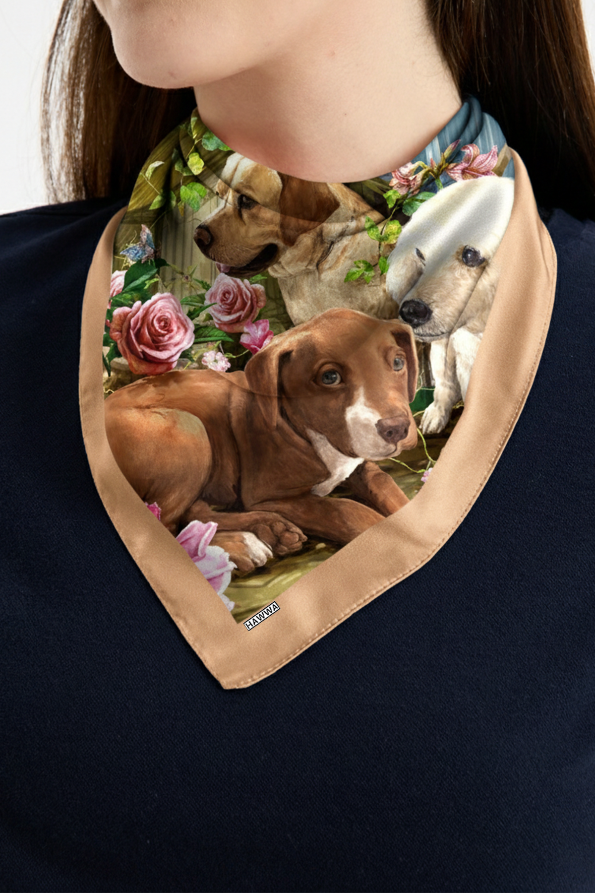 Hawwa’nın seçkin koleksiyonundan Floral Köpek Dostları Desenli Bandana Fular, şıklığı ve zarafeti bir araya getirir.