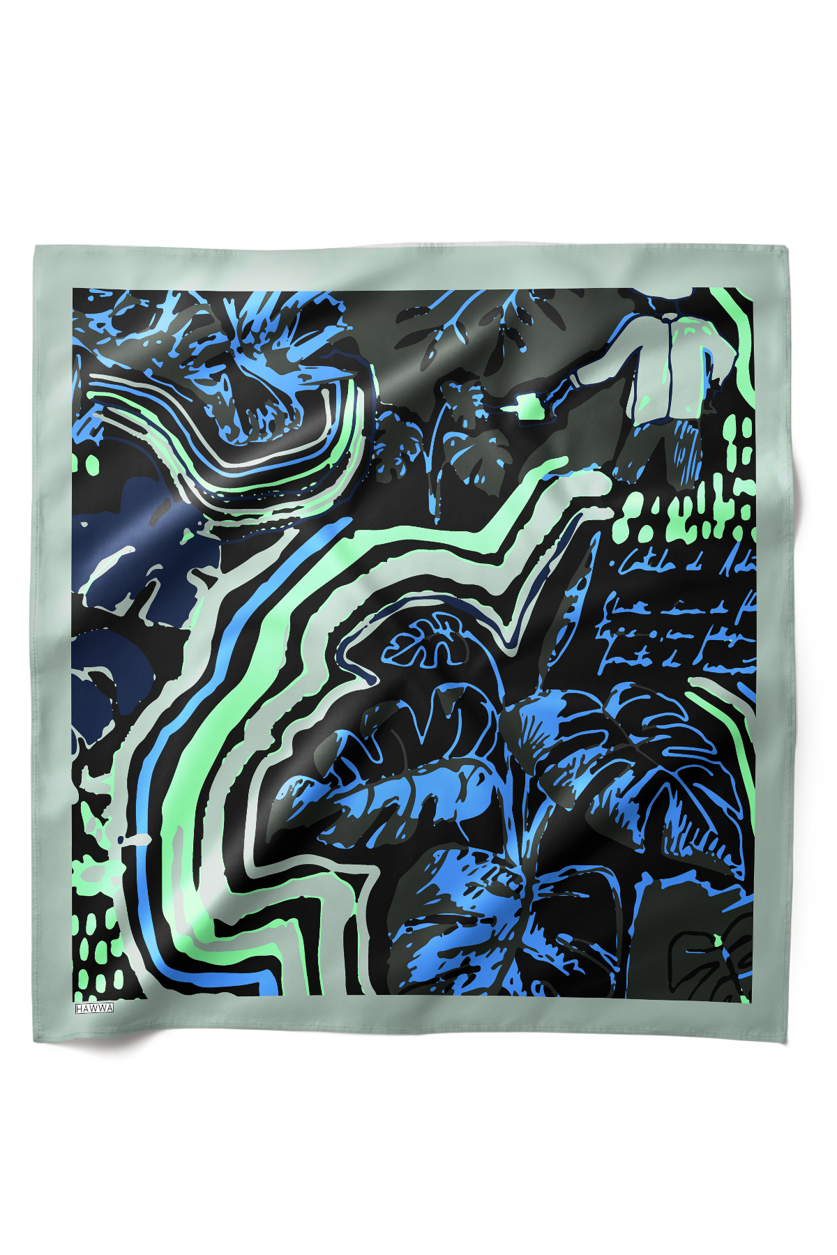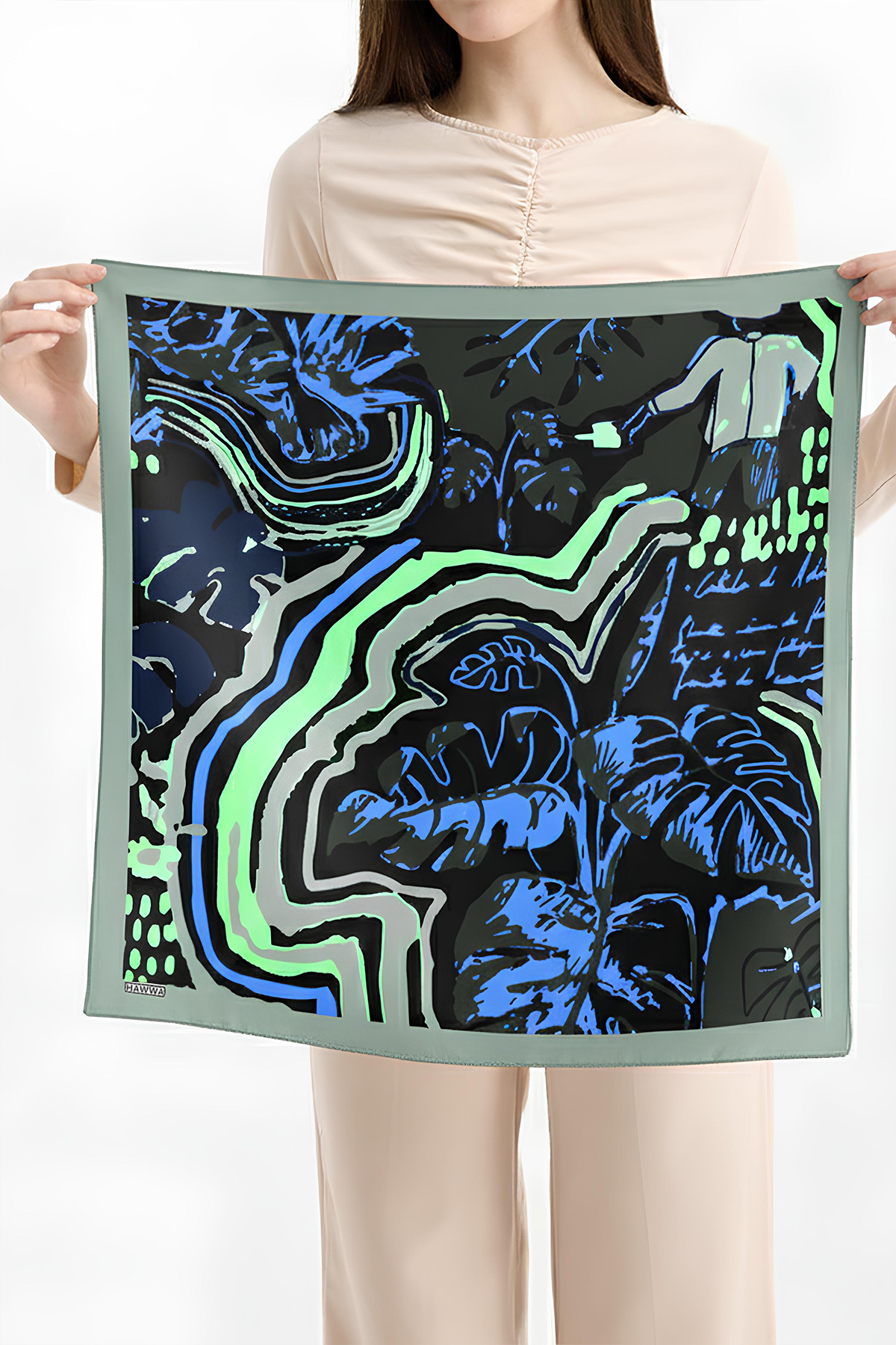 Hawwa’nın seçkin koleksiyonundan Gece Ormanı Desenli Bandana Fular, şıklığı ve zarafeti bir araya getirir. Yumuşak dokulu rayon saten kumaşı, ışığı doğal biçimde yansıtarak ipeksi bir görünüm kazandırır. Kompakt 55×55 cm ölçüsü, hem boyun fularında hem saç aksesuarında hem de çanta süslemede çok yönlü kullanım sağlar.