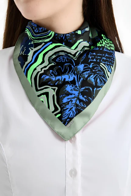 Kompakt 55x55 cm ölçüsü, hem boyun fularında hem saç aksesuarında hem de çanta süslemede çok yönlü kullanım sağlar.