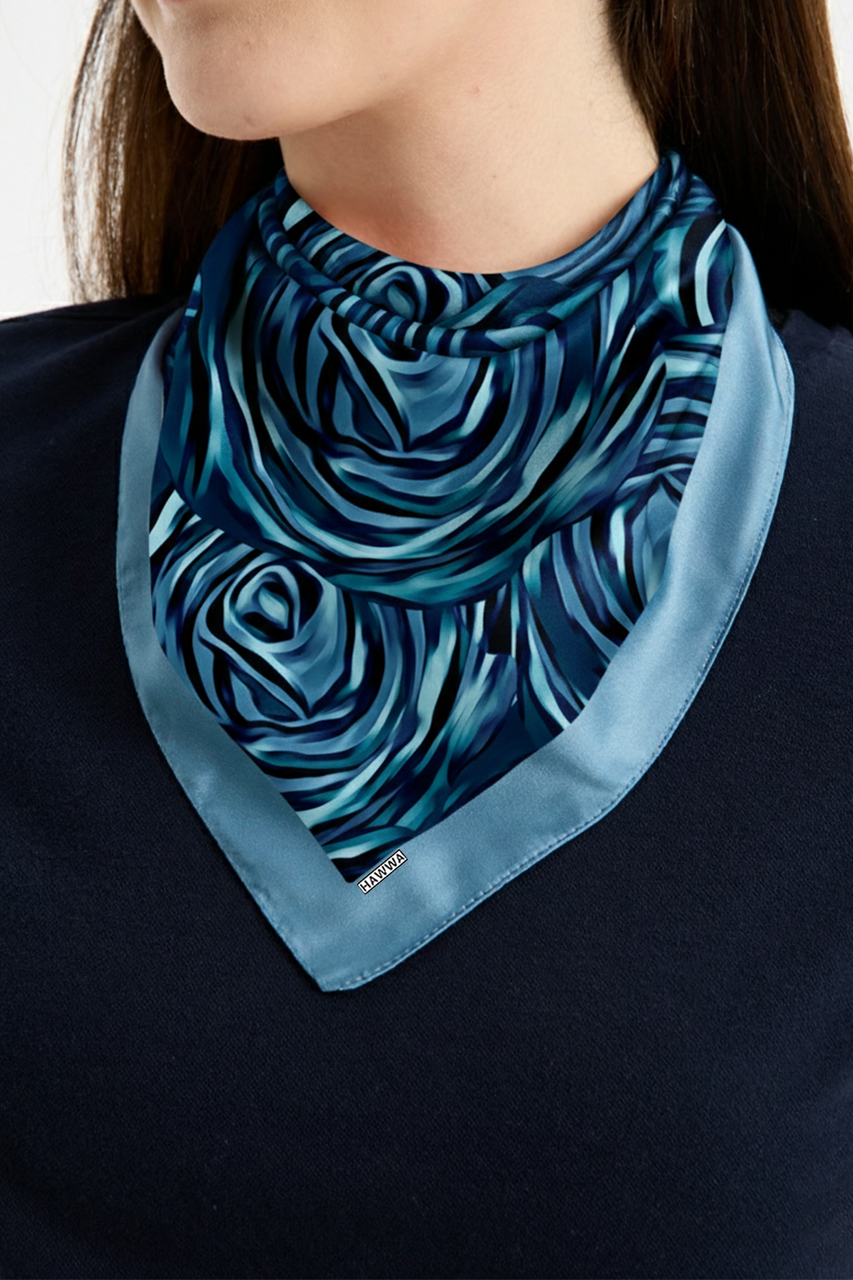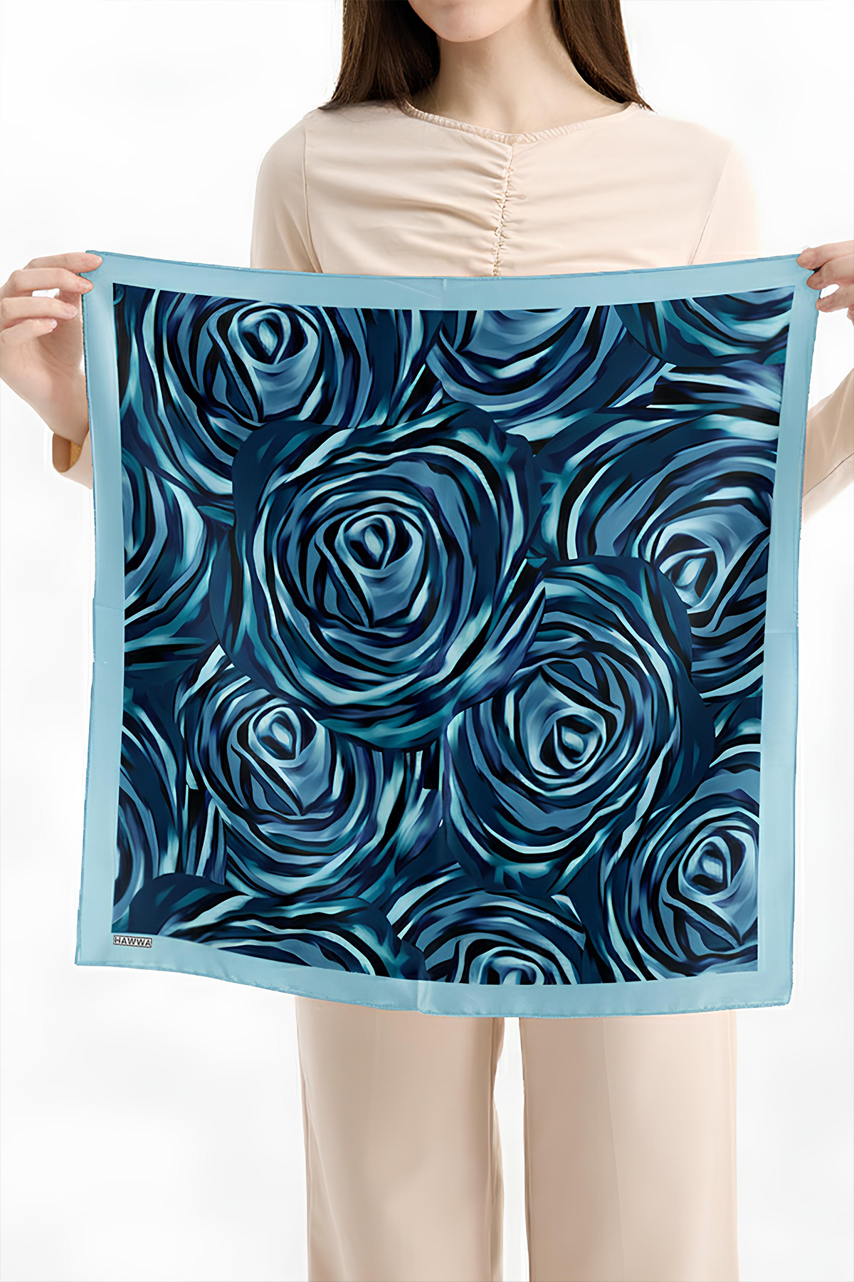 Hawwa’nın seçkin koleksiyonundan Mavi Sükût Desenli Bandana Fular, şıklığı ve zarafeti bir araya getirir. Yumuşak dokulu rayon saten kumaşı, ışığı doğal biçimde yansıtarak ipeksi bir görünüm kazandırır. Kompakt 55×55 cm ölçüsü, hem boyun fularında hem saç aksesuarında hem de çanta süslemede çok yönlü kullanım sağlar.