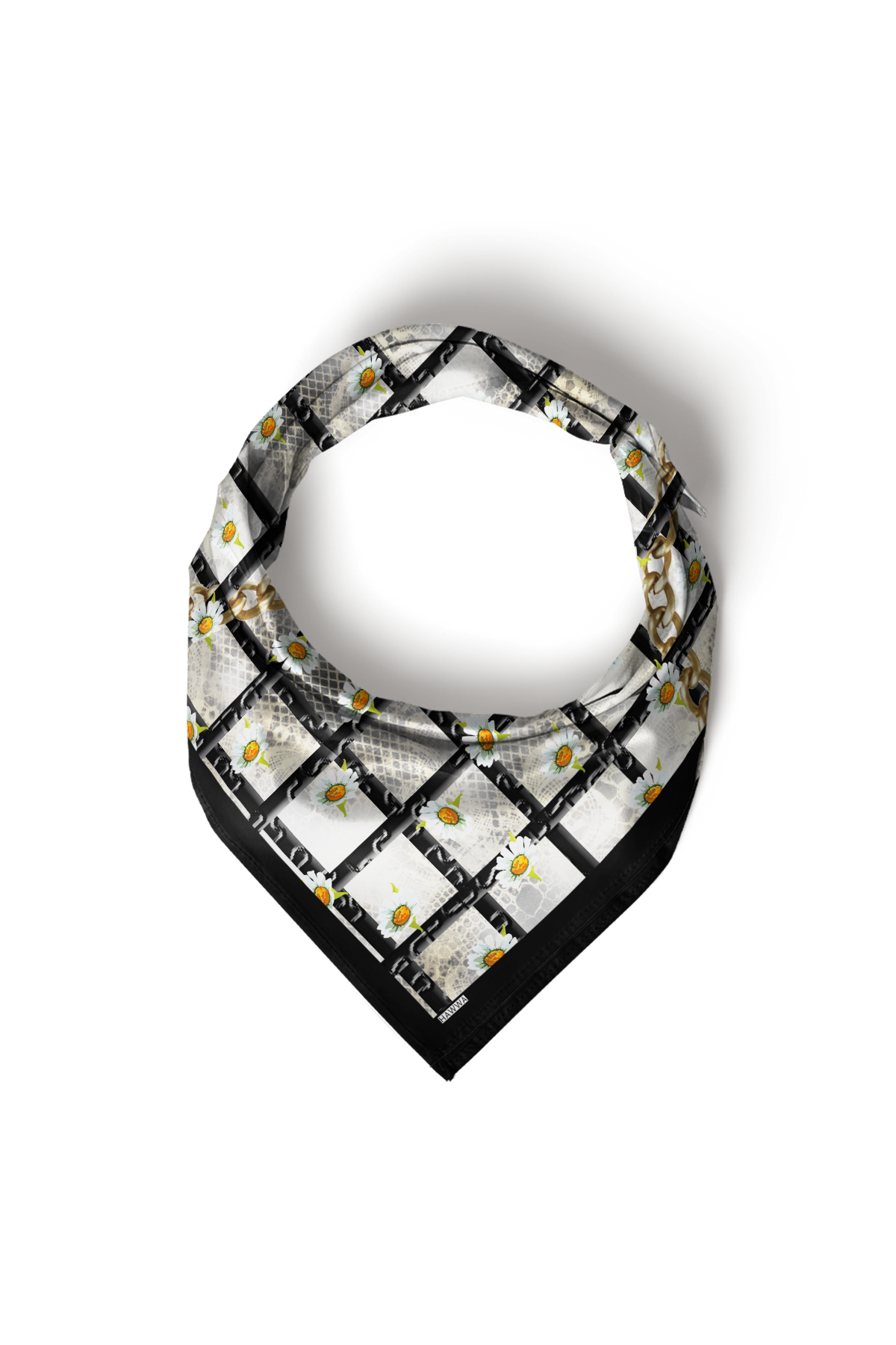 Hawwa’nın seçkin koleksiyonundan Papatya Zinciri Desenli Bandana Fular, şıklığı ve zarafeti bir araya getirir. Yumuşak dokulu rayon saten kumaşı, ışığı doğal biçimde yansıtarak ipeksi bir görünüm kazandırır. Kompakt 55×55 cm ölçüsü, hem boyun fularında hem saç aksesuarında hem de çanta süslemede çok yönlü kullanım sağlar.