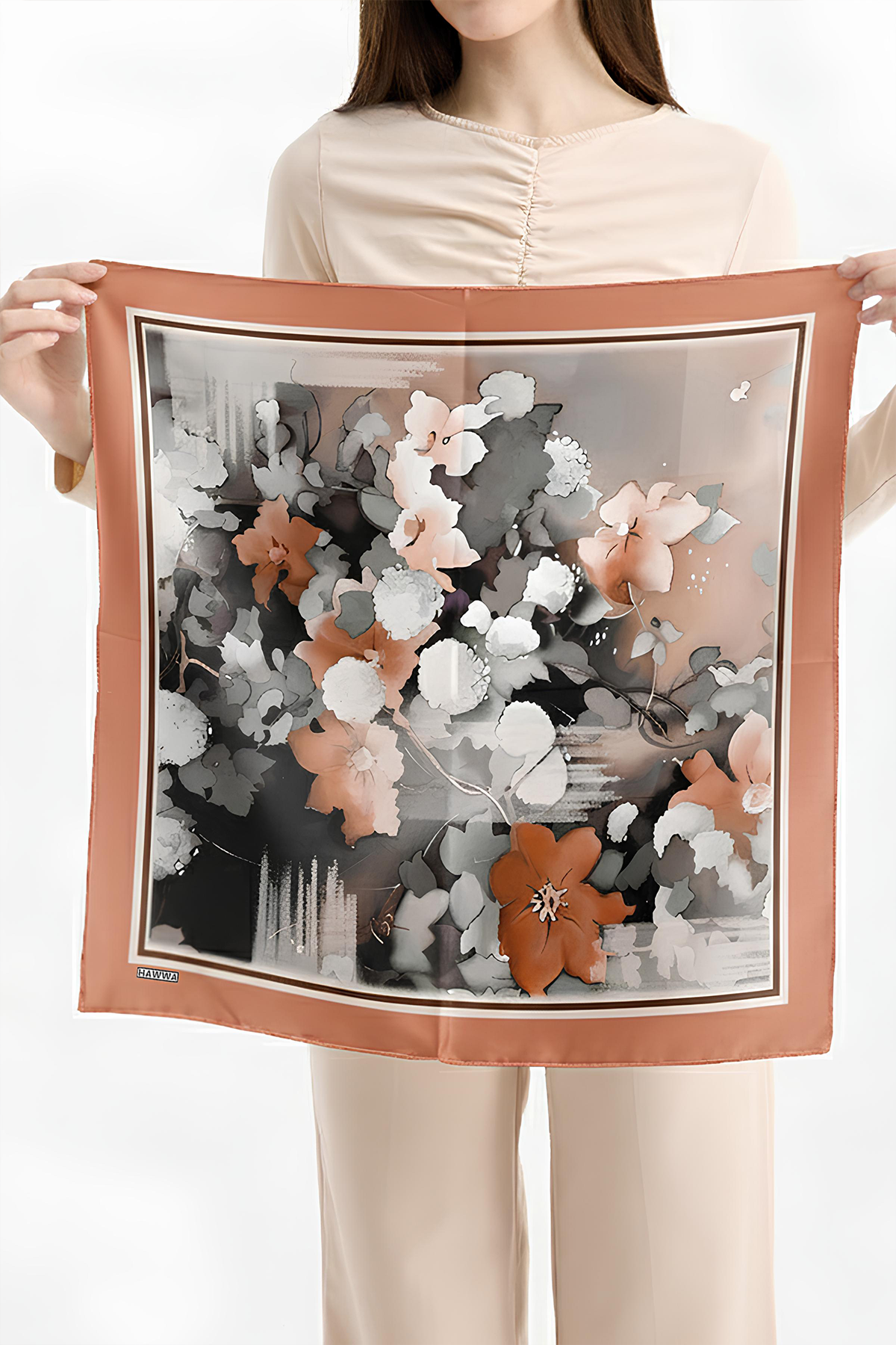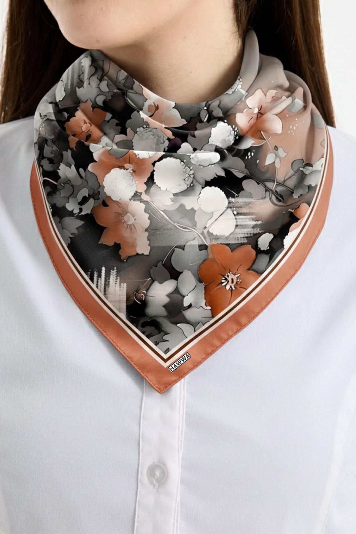 Hawwa’nın seçkin koleksiyonundan Terrakota Çiçek Desenli Bandana Fular, şıklığı ve zarafeti bir araya getirir.